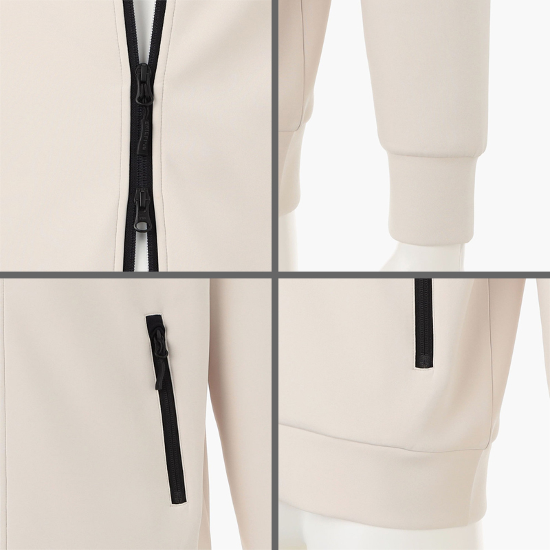 ・シルエットの調整を可能とするフロントのダブルジップ。