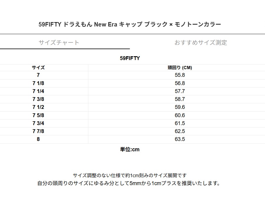 日本を代表する国民的キャラクターであるドラえもんをフィーチャーしたコレクション。 シルエットはニューエラを代表するスタイルの59FIFTY。 フロントパネルの内側に独自の芯を作ることで型崩れしにくいクラシックなシルエット。 サイズ調整のない仕様で、約1cm刻みのサイズ展開。 頭の小さい方から大きな方まで、ジャストサイズで被ることができます。 また、アジャスターがないので、リアのシルエットが美しく、頭の形が綺麗に見えます。 738(58.7cm) 712(59.6cm) 758(60.6cm) 素材:ポリエステル メーカー品番:14935482