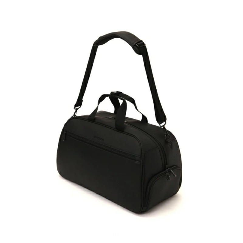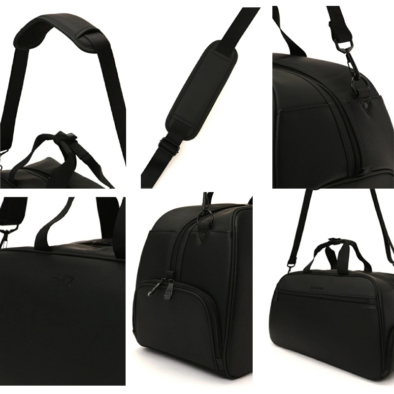 シンセティックレザーのスポーティーなボストンバッグ。シューズインポケット、ショルダーベルト装備。