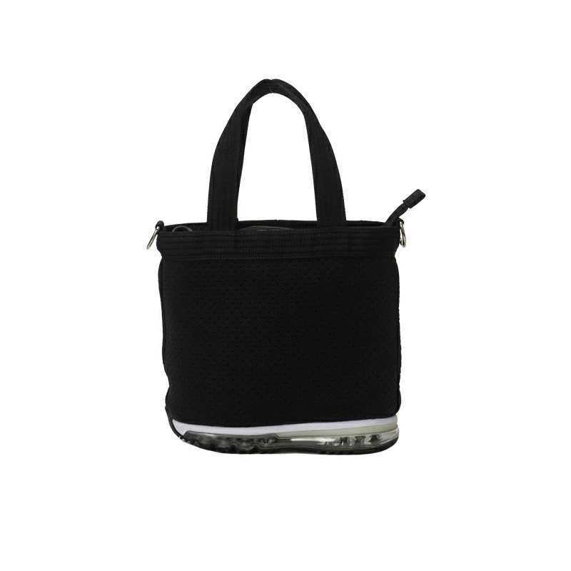 「バッグが靴を、履いたなら。」 伸縮性のある丈夫なポリエステル素材と、スポーティーなエアーソールを用いた代表モデル。 普段のファッションにワンポイントの遊びを加えてくれるシリーズ。天マチにはファスナーが付いて ゴルフやアウトドアでのカラス対策も安心。 しっかりと自立し地面や床に気兼ねなく置けるので普段使いからジムバッグ、アウトドア、ペットのお散歩など 用途はさまざま。取り外し可能なショルダーストラップも付属し、 コーディネートやお出掛け先によって使い方が変えられるところもうれしいポイント。 ■サイズ:W25cm×D12cm×H24cm ■素材:ポリエステル OKMG5ST2