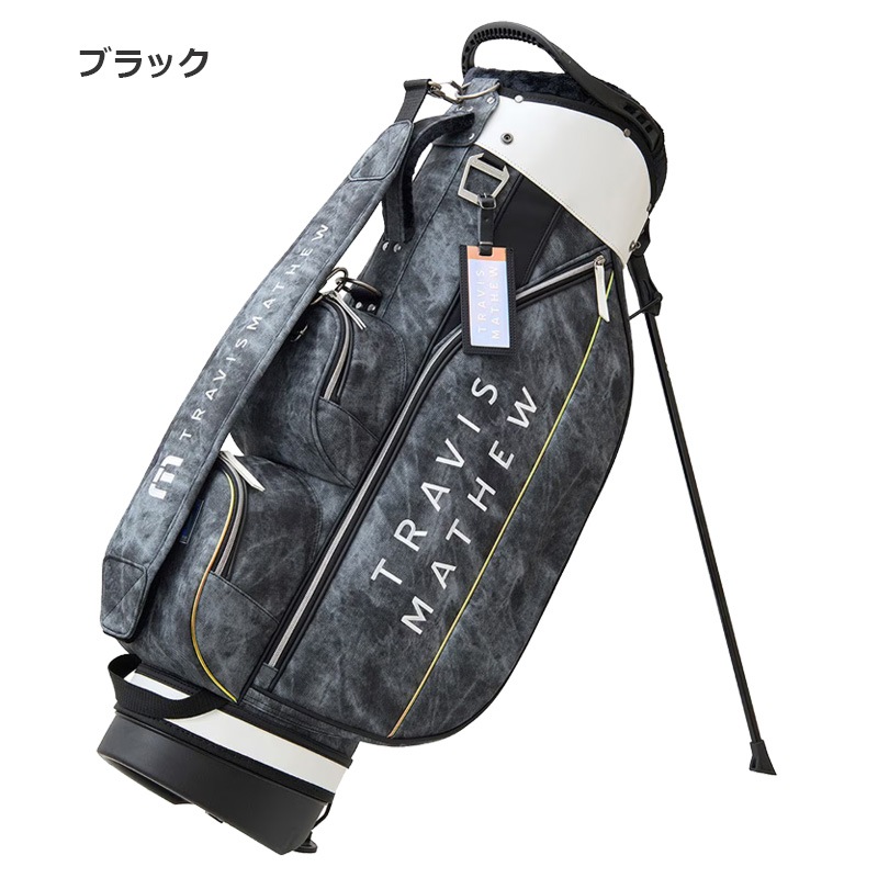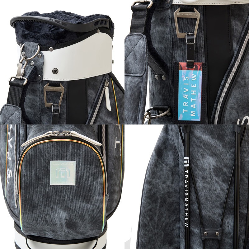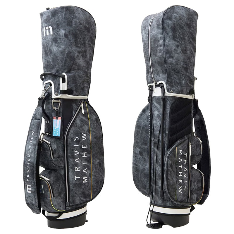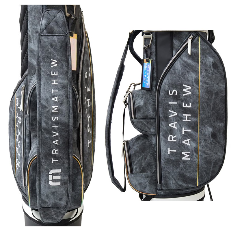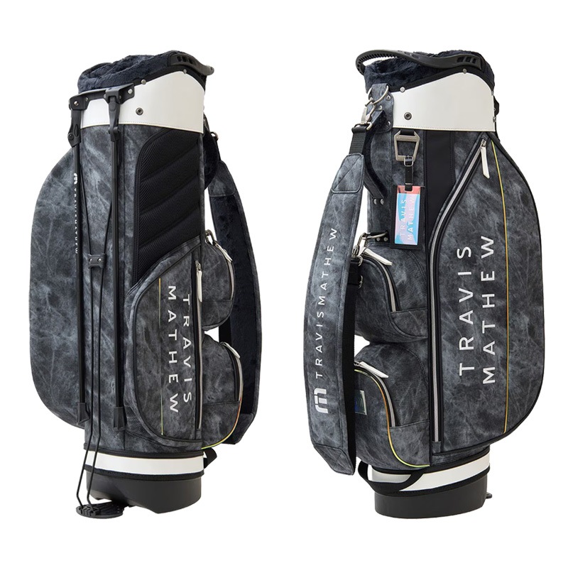 シーズンテーマであるオーロラを表現したスタイリッシュなスタンド型キャディバッグ。 ボディにニュアンスあるストーン調柄生地を合わせた光るラインアクセントがスタイリッシュな印象。 5分割口径のセパレーター付きで収納しやすく実用的なマルチポケットも充実。 軽量仕上げでセルフプレーにも適したカジュアルなスタイリングを好む方にもおすすめのアイテムです。 ※フードカバーはサイドポケットに収納されています。 ■サイズ:9.0型(47インチ対応) ※製品によって仕上がりサイズに多少の誤差がありますのでご了承ください。 ■素材:合成皮革 ■原産国:中国