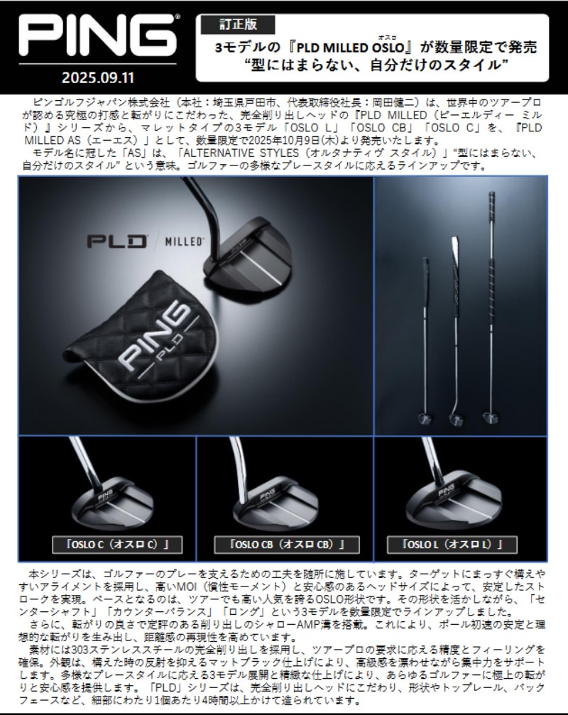 • 【即納/数量限定】2025 PING ピンゴルフ PLD ミルド AS オスロ CB 中尺 パター 日本正規品 OSLO CB 38インチ 右用 オールスタンダード